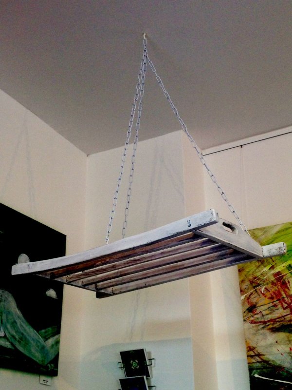 Ein altes Wäscherost haben wir zur Küchen/Kräuterkrone umfunktioniert. Darauf kannst du sehr schöne Körbe präsentieren und Kellen oder Schöpflöffel anhängen.