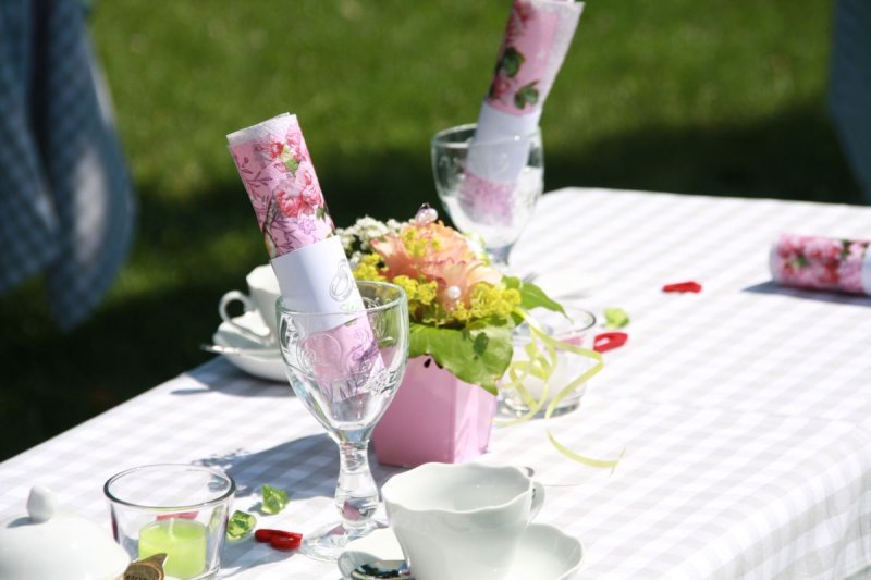 Bilder von der romantischen Hochzeitsdekoration in Moritzburg bei Dresden im Marcolinihaus und auf der Festwiese am 6. Juni 2014