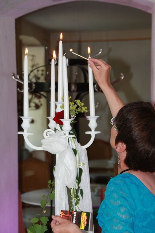 „Ich wusste, dass es schön wird, aber dass es soooo schön wird ..." Waren die Worte der Braut, als sie die Dekoration im Saal sah. Ein schönes Kompliment für Ramona, die sich diese Deko so ausgedacht hatte.