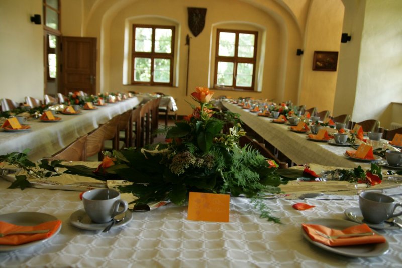 Bilder von der Hochzeitsdekoration von Pia und Uwe Bielitz im Schloss Nickern (Dresden) am 25. August 2007.