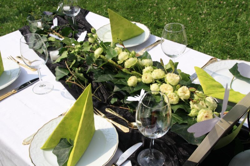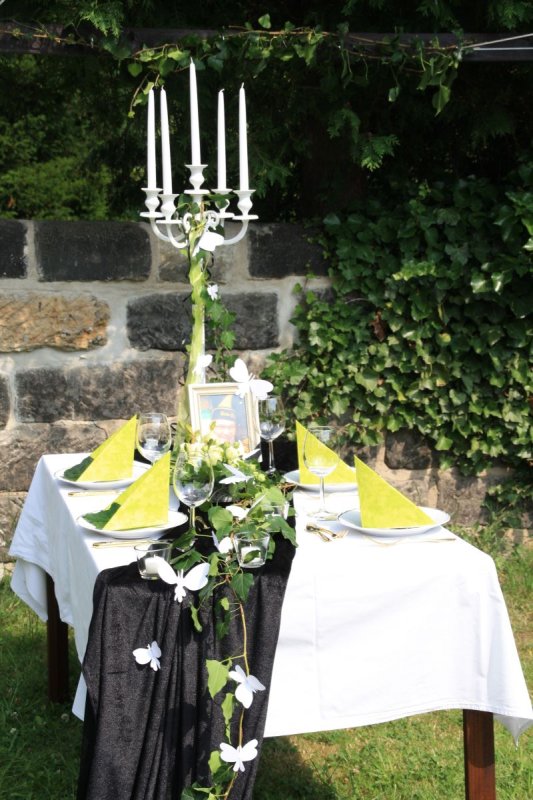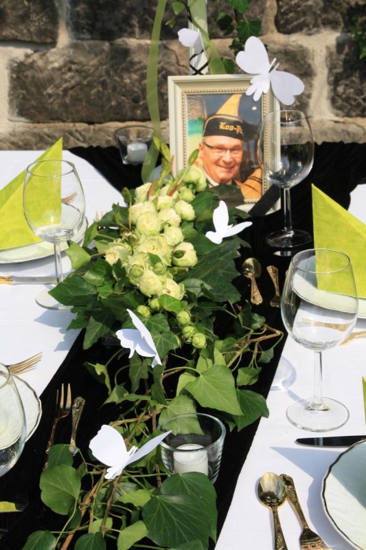 Individuelle Tafeldekoration für die Trauerfeier eines schlaraffischen Freundes und leidenschaftlichen Fliegers.